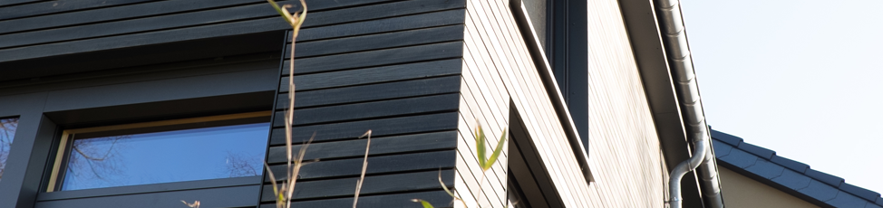In der modernen Architektur stehen Holzfassaden ganz hoch im Kurs. Manche Bauherren setzen ausschließlich auf Holz, bei anderen wird die Fassade teilweise mit anderen Materialen kombiniert. Die Fassadenbretter können wahlweise vertikal oder horizontal verlegt werden. Was die Farbe angeht, sind der Fantasie nur wenig Grenzen gesetzt: von naturgrau, über natürliche Holzoptik bis zur vielseitigen RAL-Farbpalette ist alles möglich.
